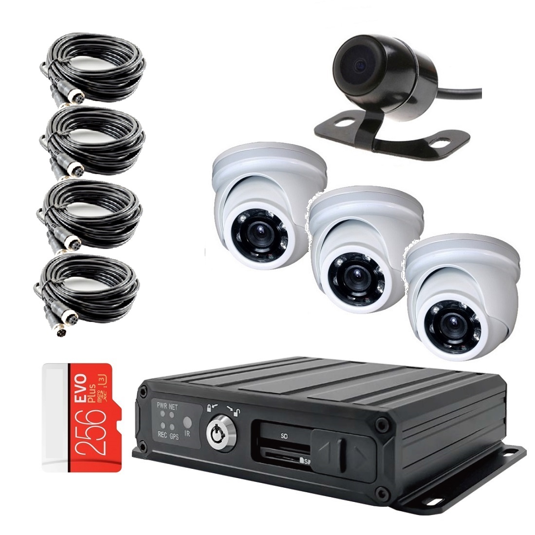 Комплект видеонаблюдения на транспорт с 1 SD картой на 4 камеры