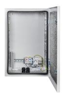 Шкаф климатический навесной с монтажной платой; 2 гермоввода (MG-25); внутренние размеры 377х577х220 мм (ШхВхГ); IP66, t-раб.-55…+50°С, 400х600х250 мм (ШхВхГ), 12.3 кг. Цвет серый. Комплектация: утеплитель из порилекса, замок 2 шт, ключ 1 шт, розетка 1 шт, автоматический выключатель, 6А 1 шт, клемма для подключения оборудования 2 шт, клемма заземления 1 шт, термореле 1 шт, реле предстарта 1 шт, нагреватель мощностью 100 Вт 1 шт.