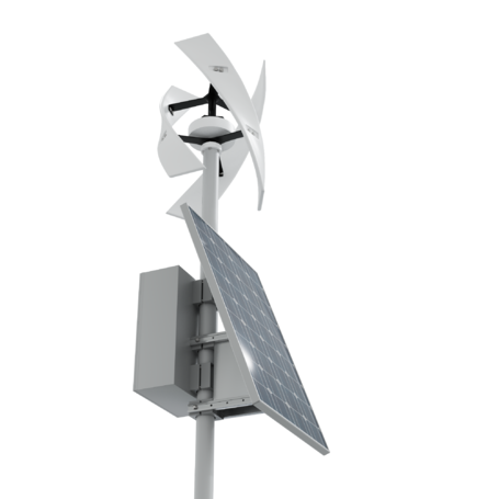 Станция является гибридным решением, сочетающим ветрогенератор вертикального типа мощностью 400 Вт с геликоидным ротором и солнечную батарею мощностью 100 Вт.